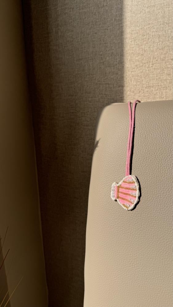 ميدالية صدفة صغيرة مطرزة يدوياً بالخرز واللؤلؤ